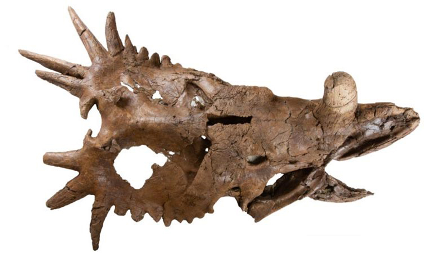 A team of researchers at the University of Alberta has unearthed a well-preserved Styracosaurus skull--and its facial...