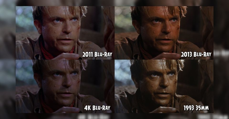 The various different Blu-ray releases of Jurassic Park look very different in terms of their color-grading when compared side-by-side....