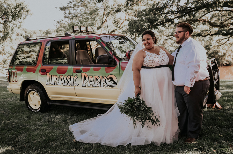 A couple who bonded over “Jurassic Park” brought their obsession to a new level when they made the movie the theme of their wedding.