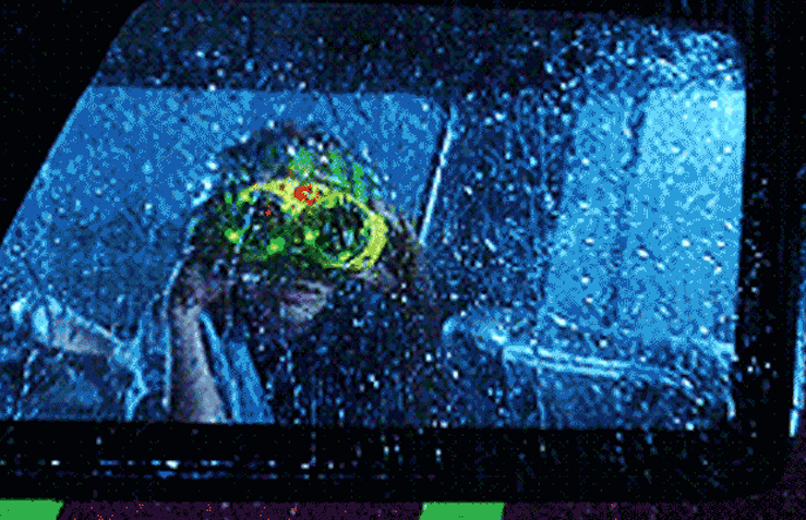 Seriously, these people can’t find better objects to hide around? That iconic scene from Jurassic Park, in which the kids fail to hide in the car after it flips and spins and falls down a cliff, should have taught these people something, right?