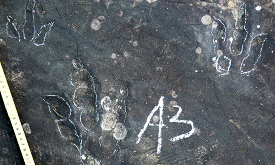 A group of international scientists led by a Chinese dinosaur expert on Friday announced the discovery of early Jurassic dinosaur footprint fossils in Hezhang...