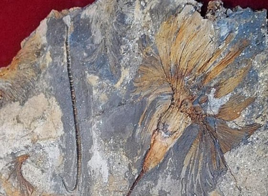 This exceptionally well-preserved crinoid, Delgadocrinus oportovinum, was found on October 11, 1905, by Nery Delgado during his work mapping the geology...