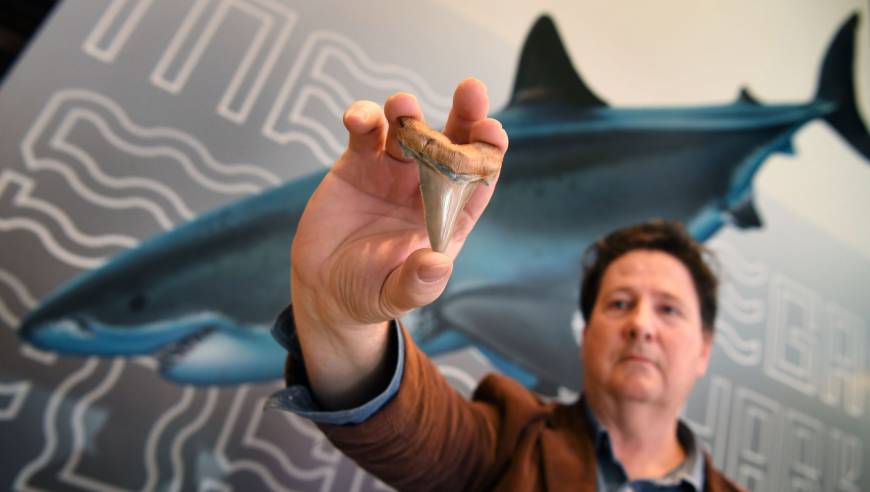 Citizen scientist Philip Mullaly and professional paleontologists have found a very rare set of fossilized shark teeth at Jan Juc, a renowned fossil site along Victoria’s Surf Coast.