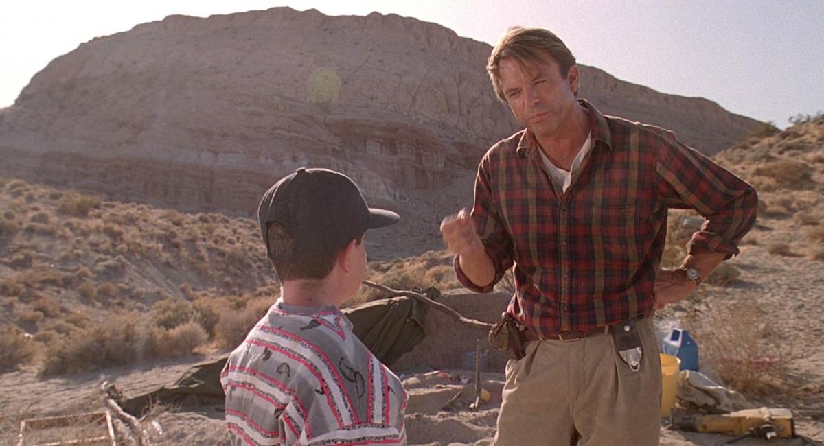The original Jurassic is one of the only films in the franchise with characters you’d really root for. We’re introduced to Sam Neill’s Dr Alan Grant as a paleontologist examining the scan of a dinosaur fossil with a team of wonderfully 90s extras – collectively sporting more double denim than a vintage Levi’s ad.