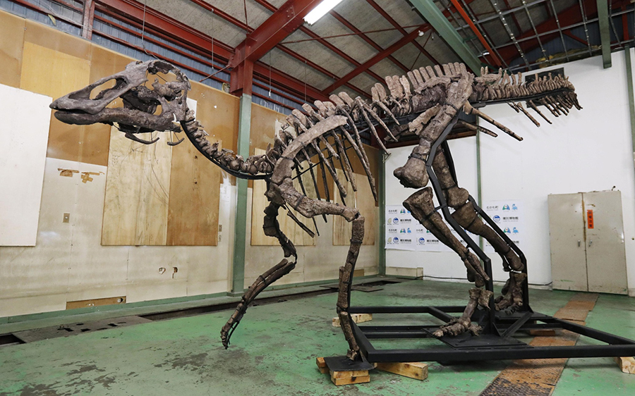 What is believed to be Japan’s largest fossilized dinosaur skeleton has been restored as a life-size replica, researchers and officials from the town of Mukawa, in Hokkaido, where the original discovery was made.