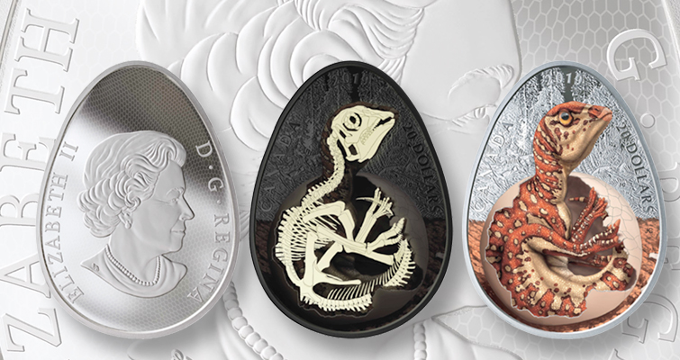 The Royal Canadian Mint celebrates the dinosaur type found in 1987 on an egg-shaped coin with glow-in-the-dark features.