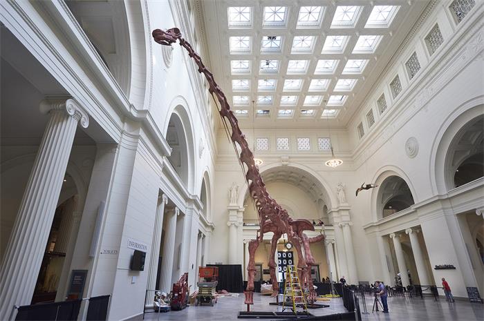 The cast of the biggest dinosaur ever discovered stands tall and extends far beyond the area...