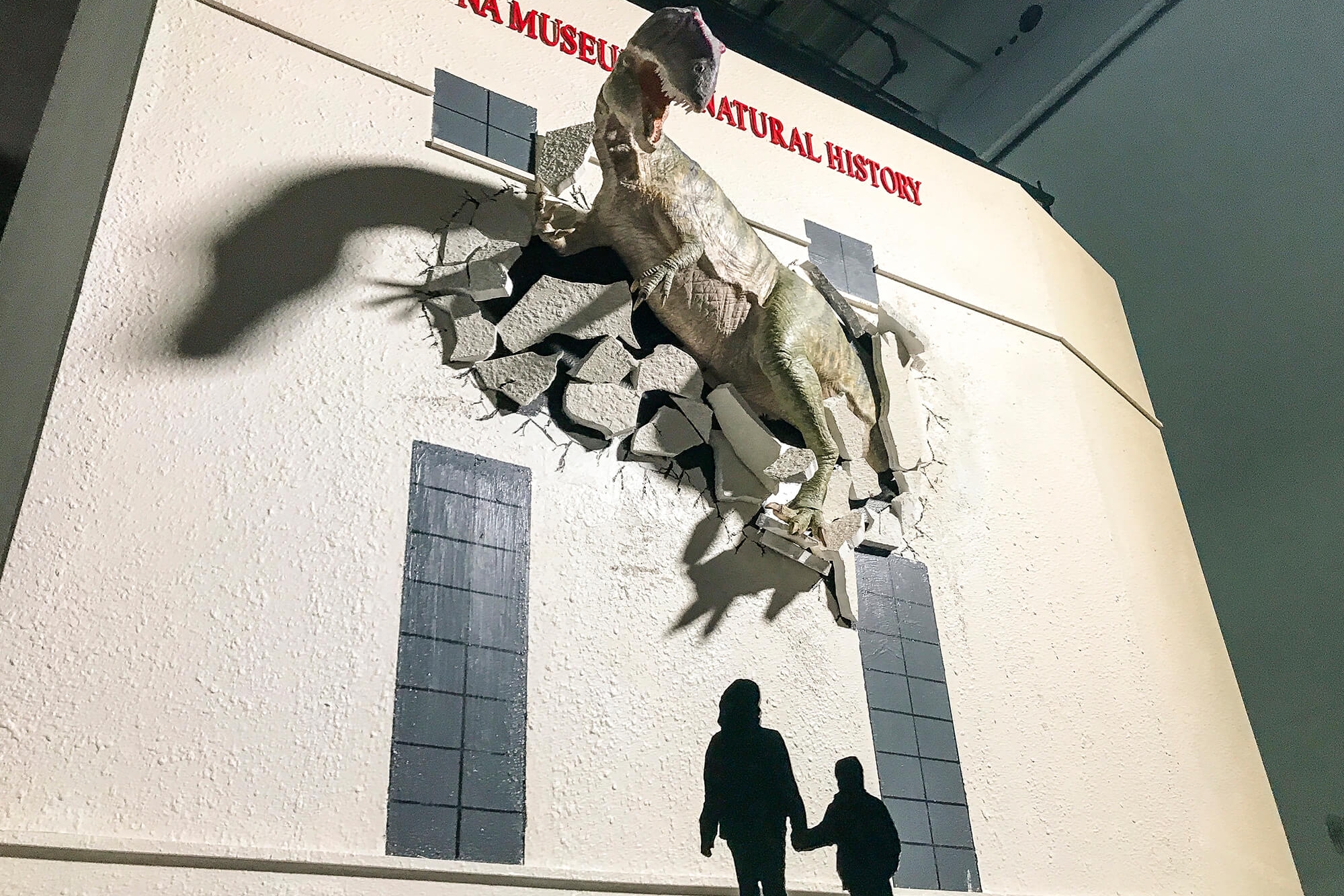 A Mesa museum unveiled an eye-catching addition to its exterior Tuesday, a fierce dinosaur that appears to be breaking through the wall.